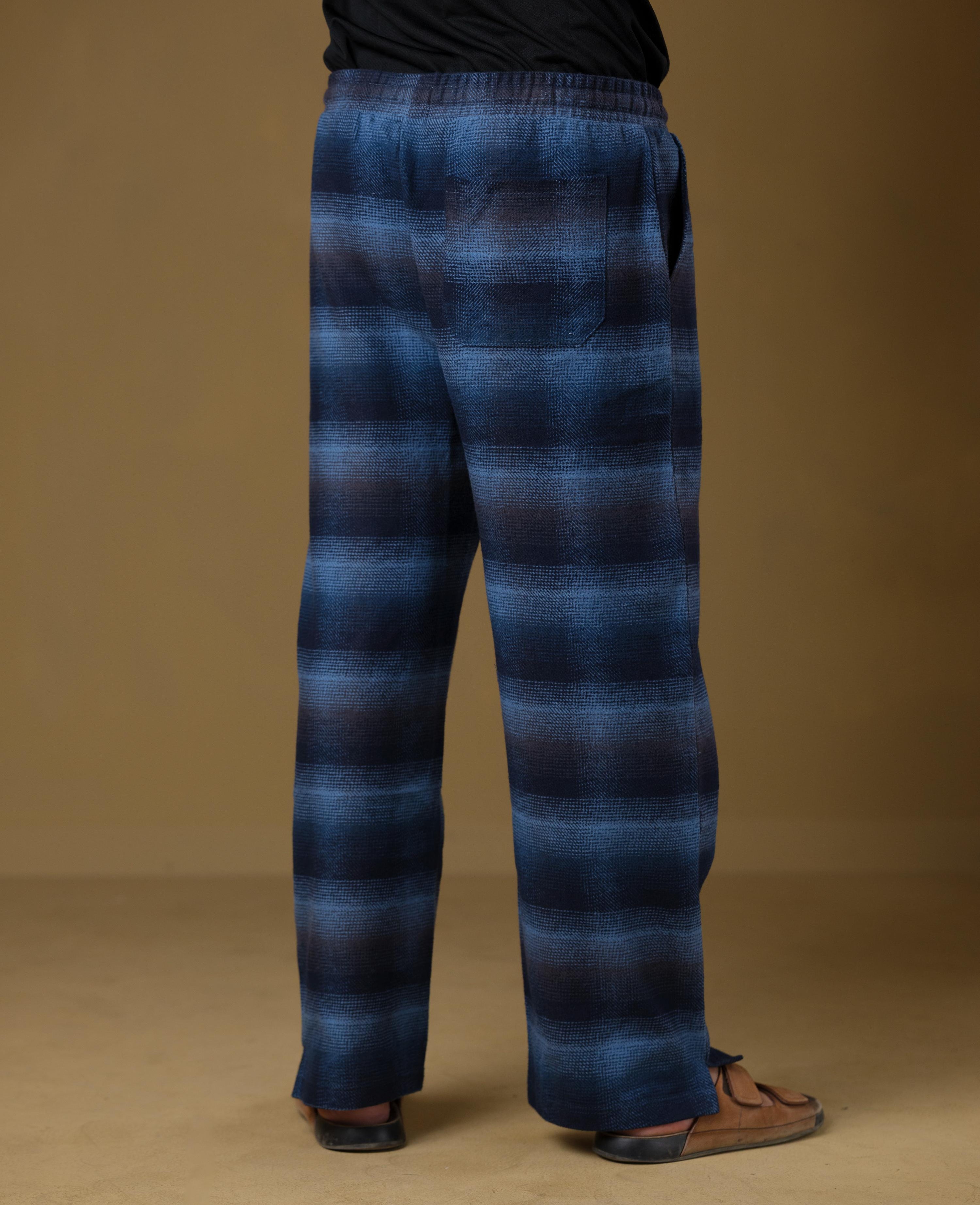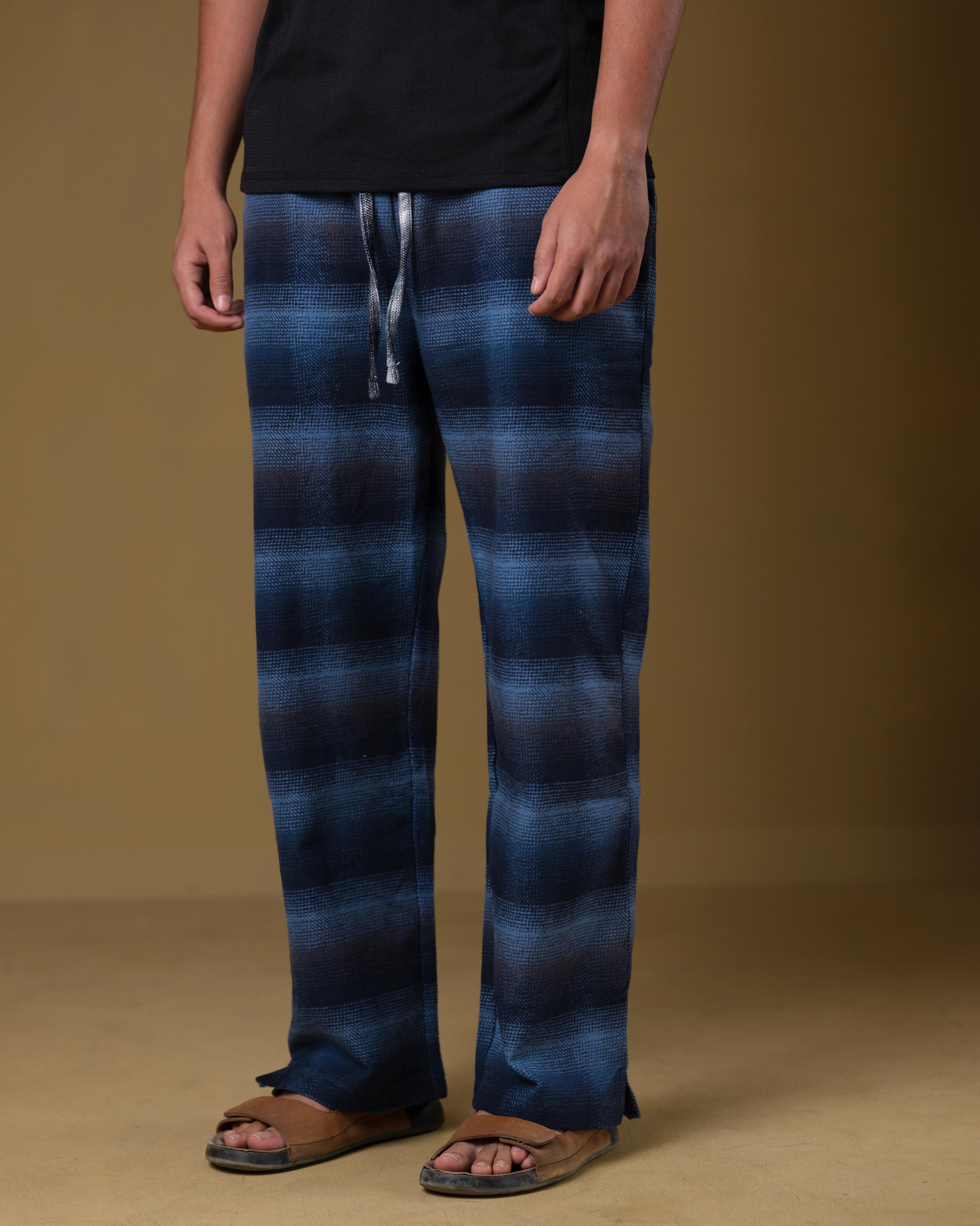 Men’s Navy Blue Gradient Check Lounge Pants – Relaxed Fit Drawstring Trousers | SJ-03